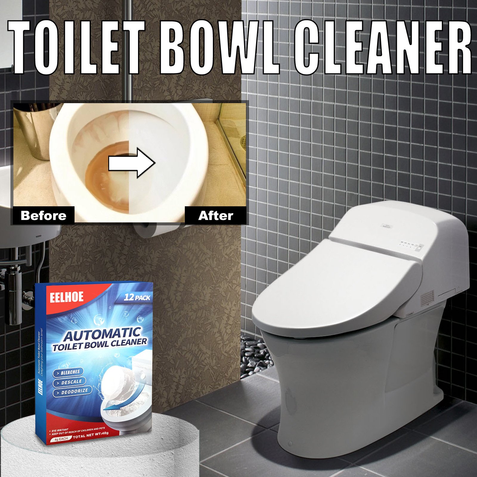 EELHOE Toilet Cleaning Effervescent Tablet, Toilet Toilet Descaling, Decontamination, Deodorization, Multi-Effect To Remove Smell And Fresh