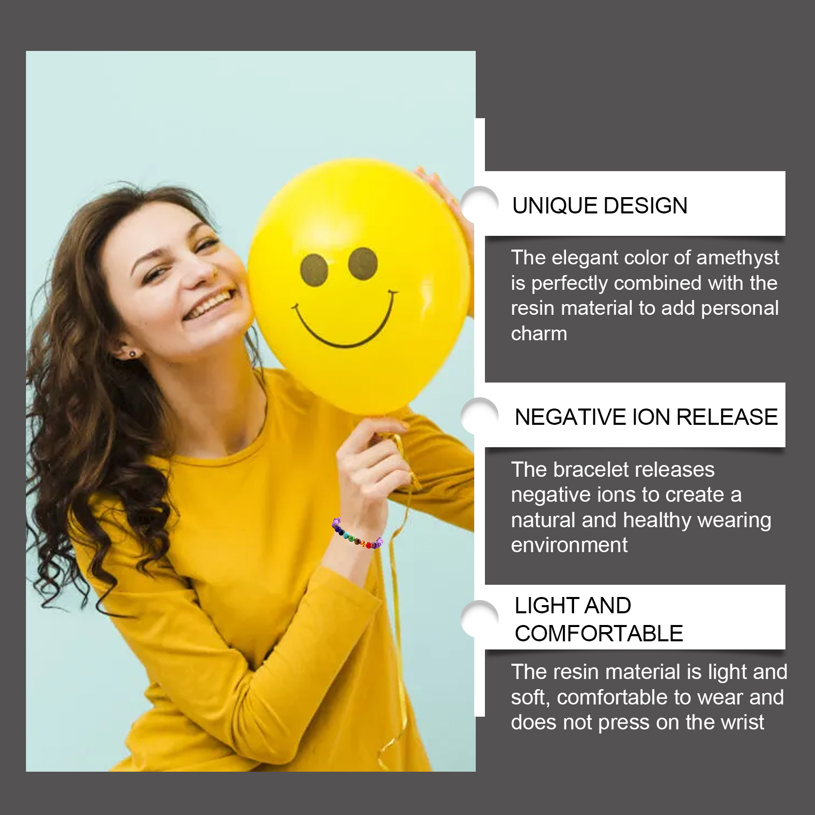 Our amethyst bracelet contains resin. It can bring a natural experience of physical and mental relaxation. The way to use it is simple: wear the bracelet directly on your wrist. And can be easily matched with other accessories, improve the overall temperament and taste, suitable for gifts, to pass health, beautiful blessings.
