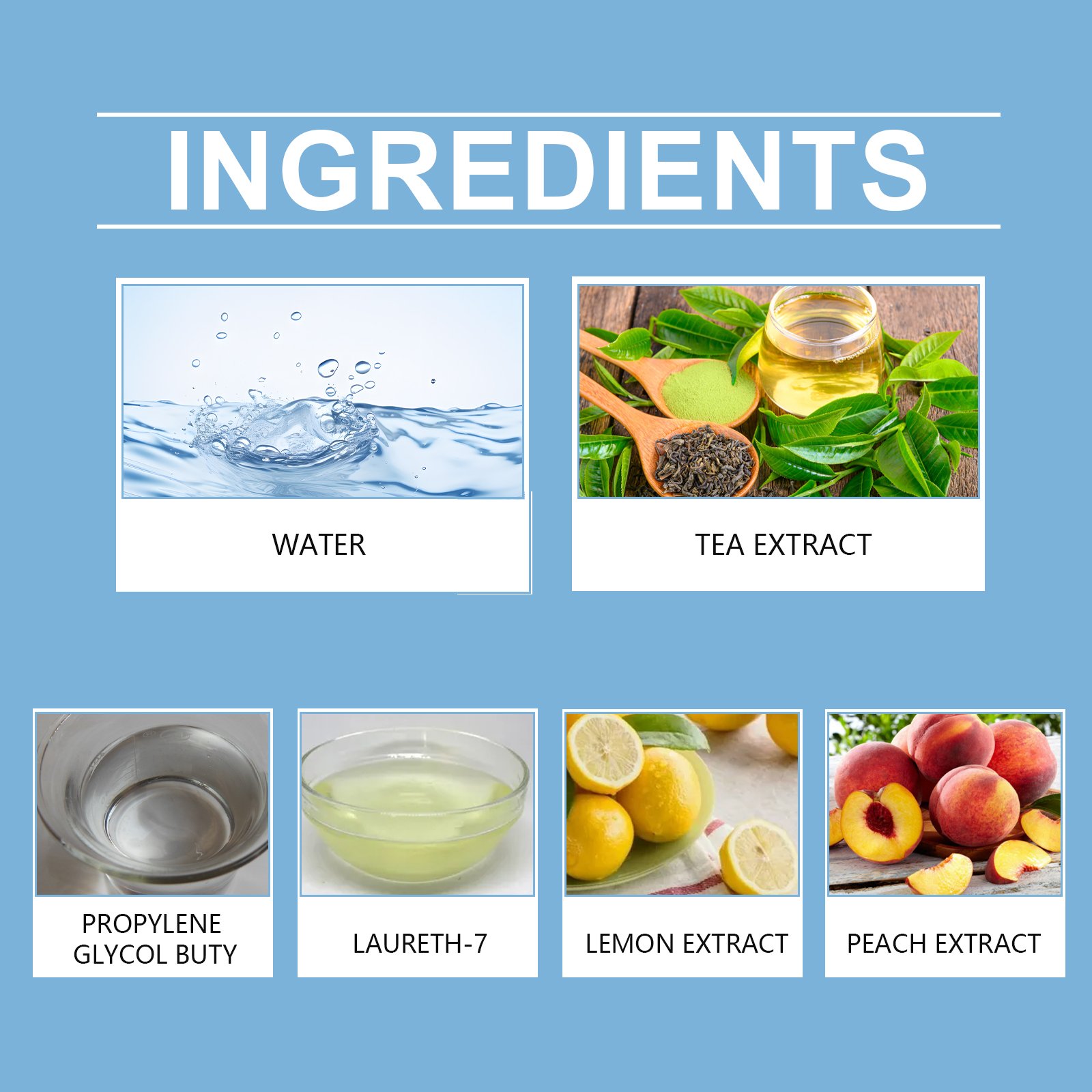 Our bathroom cleaner (Fresh lemon flavor) contains tea extract, lemon extract. It can deeply clean the bathroom surface, quickly break down stubborn stains, and keep the surface clean and bright. Effectively inhibit the growth of bacteria and continue to provide a healthy and clean bathroom environment. Its use method is very simple: spray the cleaner on the contaminated surface, let it sit for a few minutes, and thoroughly rinse the surface that has been wiped by the cleaner with water, ensuring that there is a few minutes to completely decompose the dirt and scale. Use a brush or sponge to gently wipe the cleanser-covered area to remove detergent residue. And the formula is mild, no pungent smell after cleaning, suitable for family daily use.